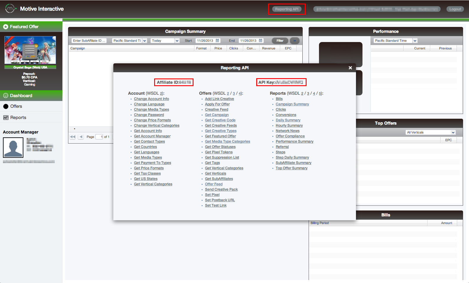 JSON: http://motivefeed.com/affiliate/3/campaigns.json?api_key=[API_KEY]&affiliate_id=[AFFILIATE_ID]&creatives=[TRUE/FALSE]&d[]=[WIDTH]x[HEIGHT]&vertical_id=[VERTICAL_ID]